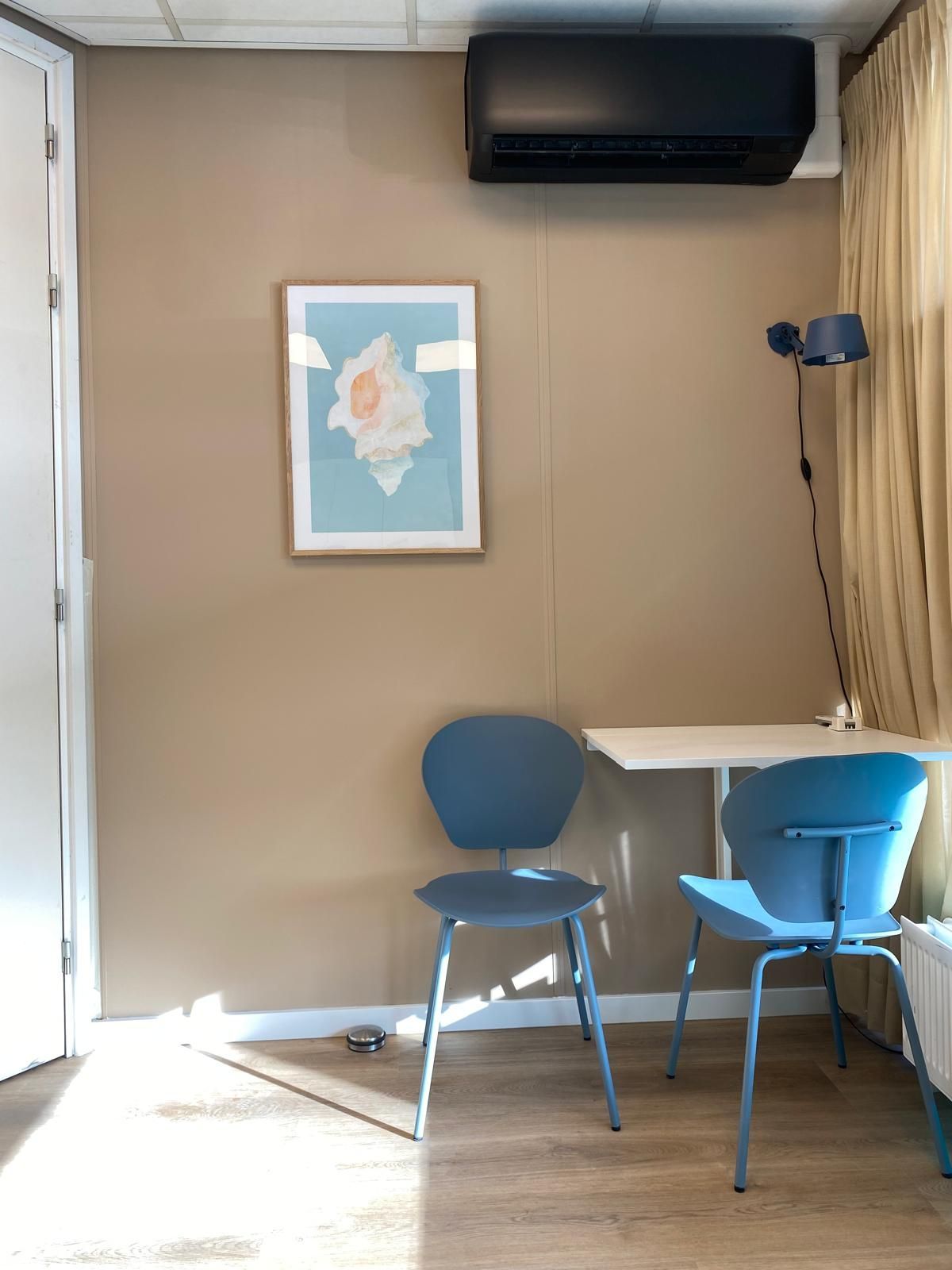 Alle behandelkamers zijn voorzien van airconditioning die zowel kan verwarmen als koelen, zodat je het ideale werkklimaat kunt creëren.